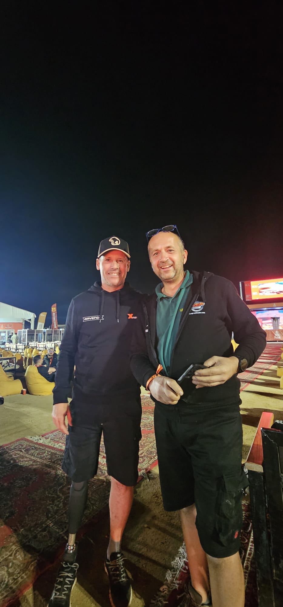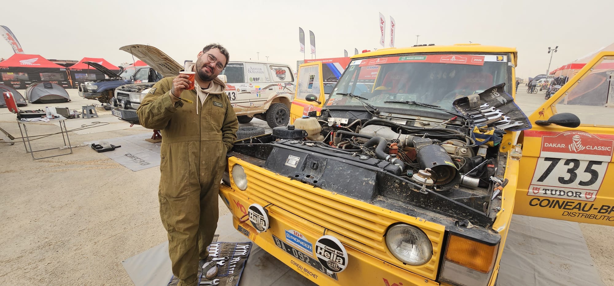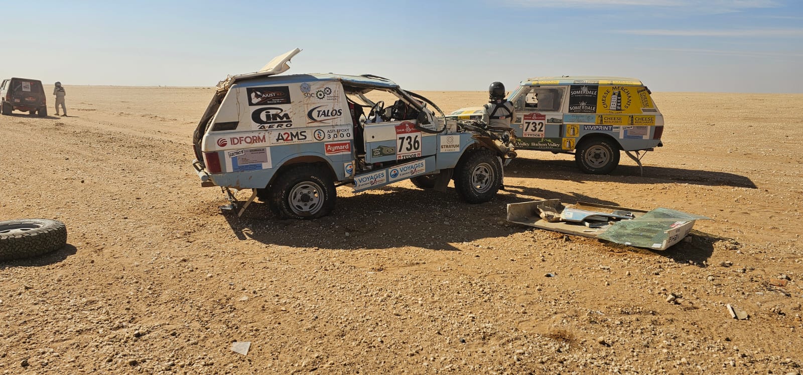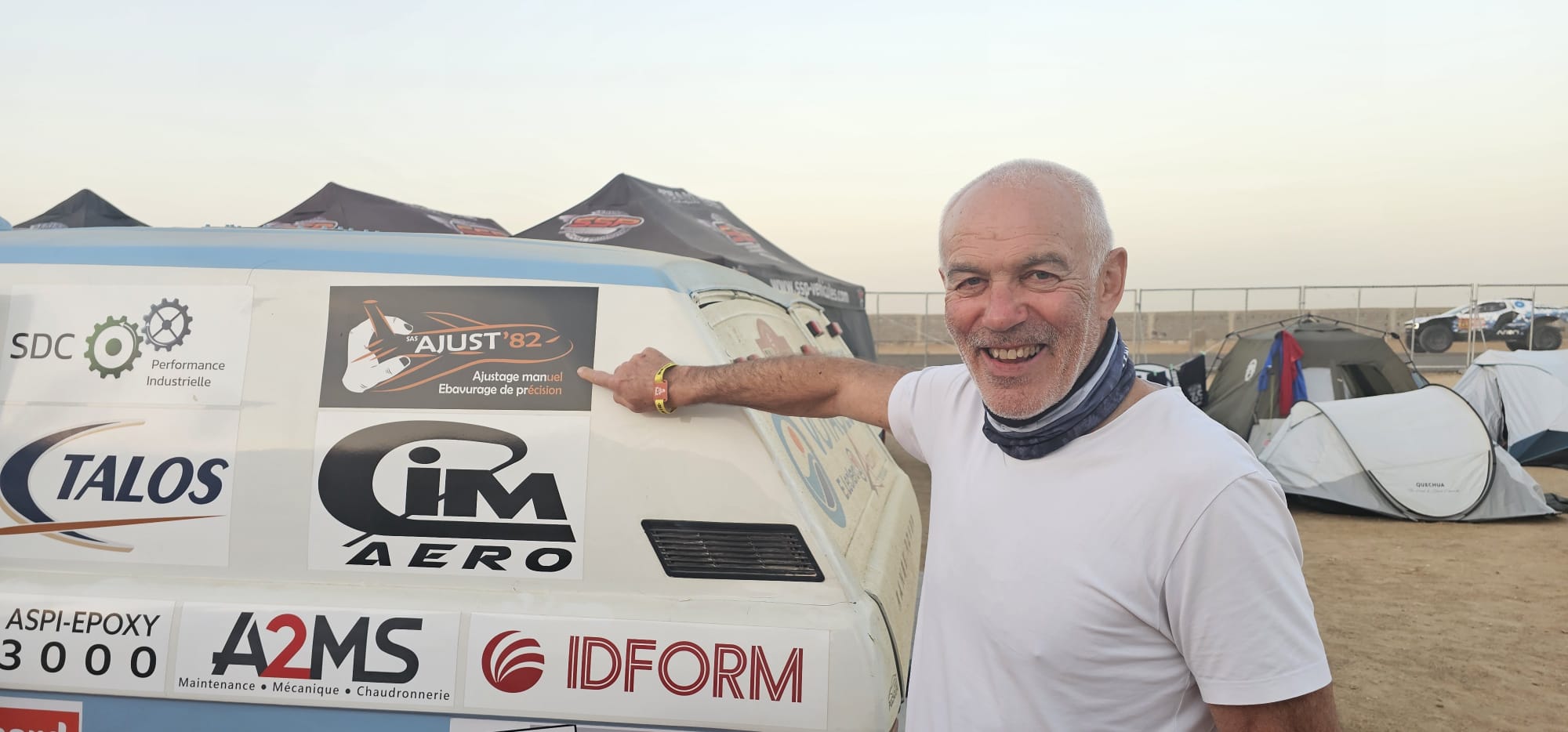 Récupération des véhicules ok, installation au bivouac avec les camions d'assistance, après un long voyage et presque une nuit blanche