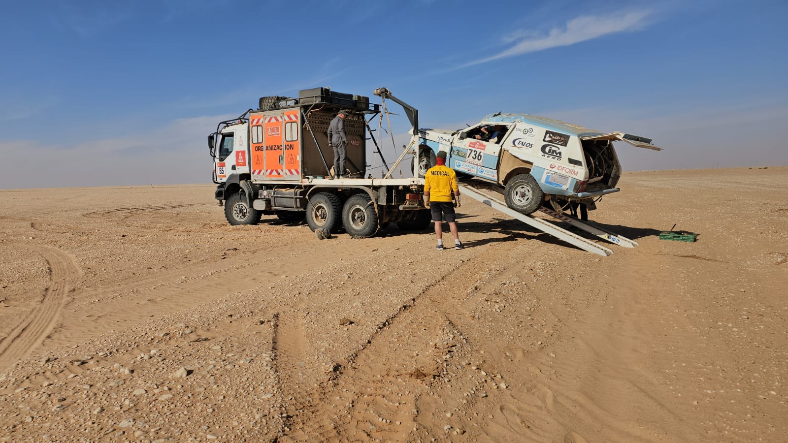 La solidarité DAKAR, des autres équipages de tous les pays qui s'arrêtent avec compassion...