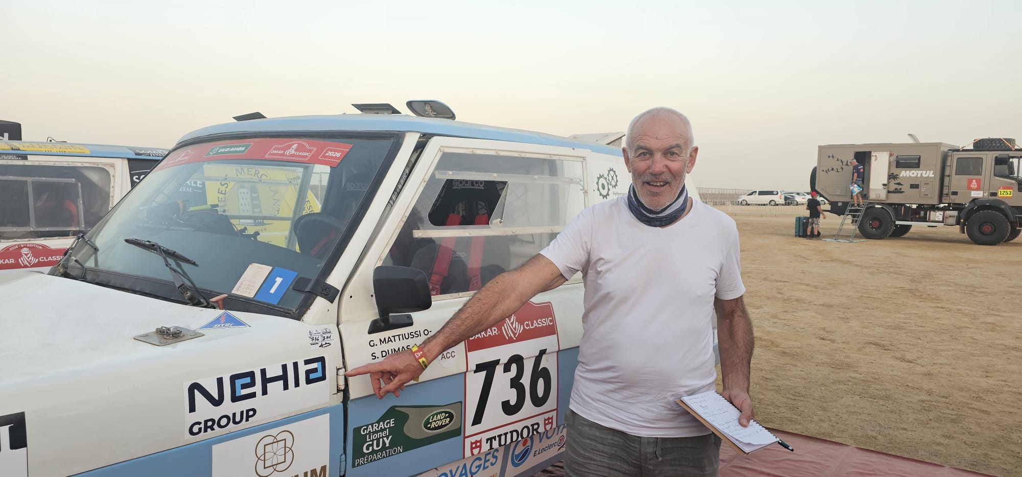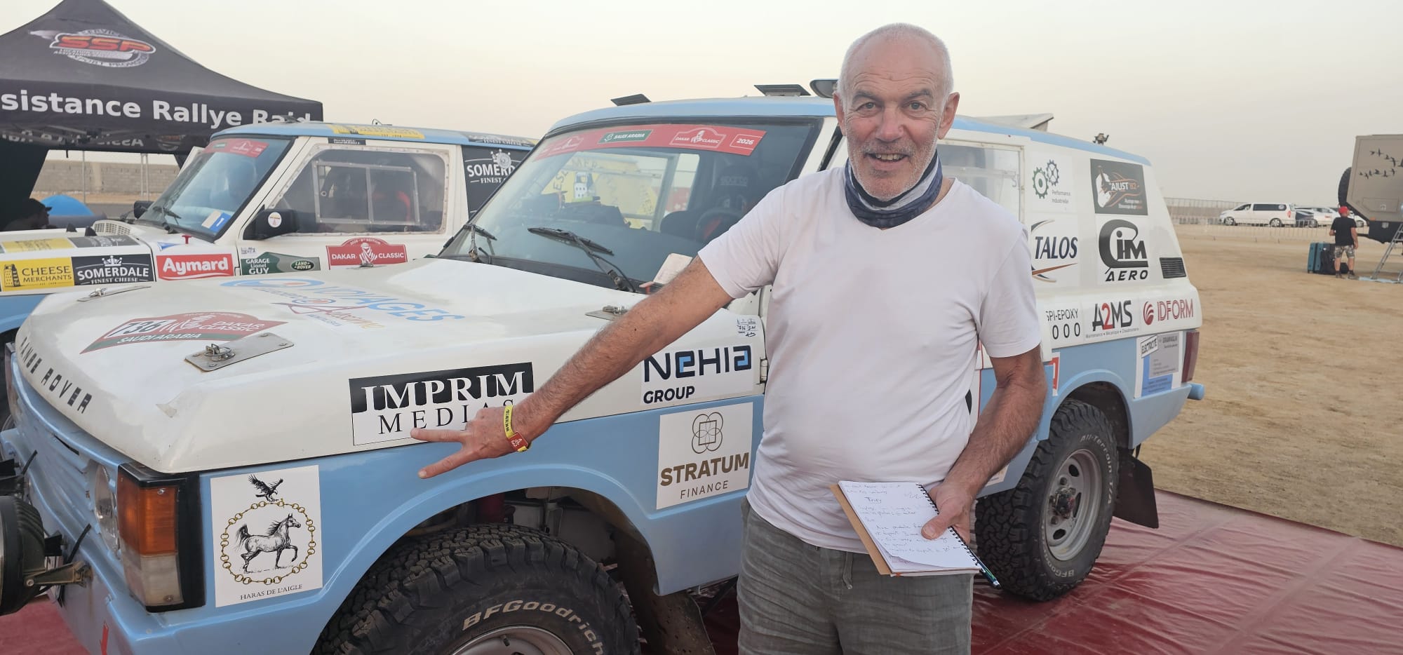 « Hervé Solandt est un ami d’il y a 40 ans, nous étions en terminale ensemble. Lui est parti vivre 40 ans aux Etats-Unis. Moi, je suis resté à Montauban où j’ai eu, et où je dirige toujours, des entreprises dans l’industrie aéronautique et automobile. Dans notre jeunesse, on était fans de Lancia Fulvia et on a renoué la discussion sur le sujet. C’est là qu’il m’a parlé de sa participation d’il y a deux ans au Dakar Classic. Au retour de son 2e Dakar Classic en 2025, il m’a proposé de partir et j’ai accepté. J’ai proposé cela à Serge Dumas qui est un ami de 20 ans. Voilà comment on a fait l’acquisition du Range Rover d’Hervé. J’ai un Defender, une MG, je roule en Range Rover moderne au quotidien, j’ai un attrait pour les Anglais en général, j’aime leur humour notamment. J’ai 65 ans, je n’ai pas d’enfant, et comme je le dis, je tire les dernières cartouches. On va essayer d’échanger le volant. On verra après les premières étapes l’appétence ou la compétence de l’un ou de l’autre, mais pour l’instant nous sommes incompétents dans tous les domaines ! L’objectif, c’est vraiment d’essayer de finir. »